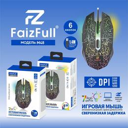 Мышь игровая проводная FaizFull M48, 3200dpi, 6кнопок, RGB, 1,5м, черная