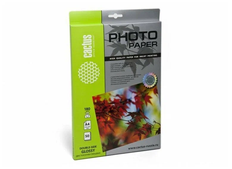 Фотобумага Cactus CS-GA418050 A4/180г/м2/50л./белый глянцевое для струйной печати