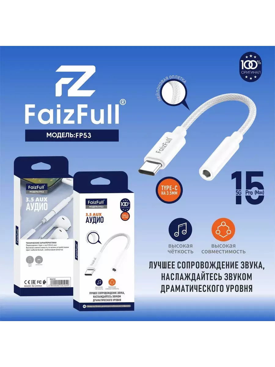 / Кабель переходник FaizFull FP-53 Type C - AUX Jack 3.5