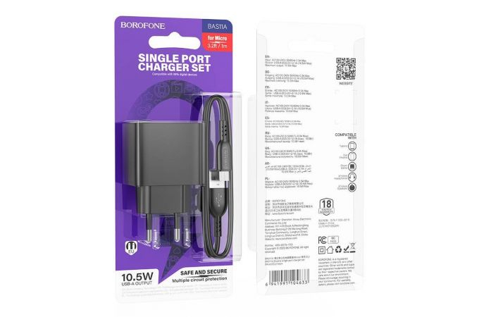 Главная / Каталог / Товары для смартфонов / Зарядные устройства / Сетевое зарядное устройство Borofone BAS11A + кабель microUSB 10,5W