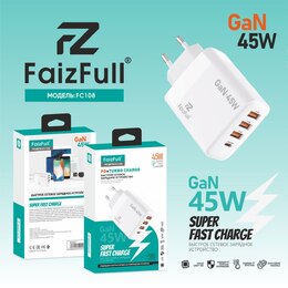 / З/У сетевое FaizFull FC108 Gan PD45W 3A 1xType-C+3USB